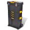 Boîte à outils portable Cette mallette à outils de haute qualité, équipée de 2 roulettes et d'une poignée, est le choix idéal pour protéger vos outils et votre équipement pendant le transport ou pour un meilleur stockage. Doté d'un coffre supérieur, d'un coffre inférieur et d'une section centrale avec 3 tiroirs, ce coffre à outils robuste vous offre un grand espace de stockage et vous aidera sûrement à maintenir vos outils en parfait état et vous apportera ainsi la commodité d'une utilisation future. Le boîtier supérieur et inférieur sont suffisamment spacieux pour accueillir de gros outils, tandis que les 3 tiroirs du milieu comportent des compartiments pour vous permettre de mieux classer les outils de petite taille, tels que les vis et les écrous. Grâce aux verrouillages latéraux, vous pouvez facilement séparer le coffre à outils lorsque vous ne voulez que prendre le coffre supérieur.Fabriqué en polypropylène de qualité, le coffre à outils présente une stabilité thermique élevée, une résistance à la corrosion et une grande durabilité pour des années d'utilisation. Grâce à la poignée télescopique, la boîte à outils est portable. C'est sûrement une aide précieuse pour organiser vos outils.