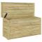 Boîte de rangement 44x119x57 cm Bois imprégné de pinCette boîte de rangement extérieure est une super idée pour garder vos outils de jardin, coussins et autres indispensables bien rangés. Fabriquée en bois naturel avec un couvercle noir stylé, elle apporte une ambiance rustique qui va bien avec n'importe quel jardin ou patio tout en offrant une solution de rangement sympa. Rangement spacieux : Avec une taille de 119 x 44,5 x 58 cm, cette boîte peut contenir plein de trucs extérieurs comme des outils de jardin et des coussins. Son espace bien pensé assure que tout est à sa place. Toit waterproof : La boîte a un panneau de toit conçu pour que la pluie ou l'humidité n'abîment pas vos affaires. C'est idéal pour garder vos objets en sécurité. Style rustique : La finition en bois naturel et le look solide de la boîte ajoutent vraiment une touche à votre extérieur. Son style rustique s'intègre parfaitement dans n'importe quel jardin ou patio. Assemblage facile : Elle est livrée avec tout le nécessaire et des instructions simples, donc deux personnes peuvent la monter rapidement. Prenez juste un tournevis standard et c'est parti. Construction durable : Fait en bois de qualité avec un toit waterproof, cette boîte est conçue pour durer malgré les intempéries, gardant vos affaires en sécurité pendant des années.