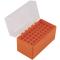 Boites à munitions, couvercle translucide, fond orange.