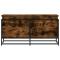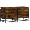 Boîte de rangement avec couvercle chêne fumé bois d'ingénierieCette boîte de rangement est une solution de rangement idéale et un excellent supplément décoratif à votre espace de vie. Matériau stable et durable : le bois d'ingénierie est un matériau durable et stable dont la surface lisse résiste à l'humidité, à la déformation et au fendillement, ce qui en fait un choix fiable pour une grande variété de projets.Cadre stable et durable : le cadre en métal de la boîte à couvertures rehausse votre intérieur d'un style industriel et offre une durabilité, une stabilité et une résistance à la corrosion exceptionnelles.Grand espace de rangement : ce coffre de rangement offre suffisamment d'espace pour garder vos vêtements, couvertures, jouets, coussins et autres objets essentiels du quotidien bien organisés.Utilisation polyvalente : avec un dessus stable, le coffre à jouets offre une surface sécurisée pour placer des collations, des boissons, des vases, des bols de fruits ou d'autres objets décoratifs. Cette boîte de rangement peut également être utilisée comme table basse, bout de canapé, table d'appoint, etc. Attention :Pour éviter qu'il ne bascule, ce produit doit être utilisé avec le dispositif de fixation murale fourni.