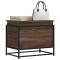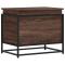 Boîte de rangement avec couvercle chêne marron bois ingénierieCette boîte de rangement est une solution de rangement idéale et un excellent supplément décoratif à votre espace de vie. Matériau stable et durable : le bois d'ingénierie est un matériau durable et stable dont la surface lisse résiste à l'humidité, à la déformation et au fendillement, ce qui en fait un choix fiable pour une grande variété de projets.Cadre stable et durable : le cadre en métal de la boîte à couvertures rehausse votre intérieur d'un style industriel et offre une durabilité, une stabilité et une résistance à la corrosion exceptionnelles.Grand espace de rangement : ce coffre de rangement offre suffisamment d'espace pour garder vos vêtements, couvertures, jouets, coussins et autres objets essentiels du quotidien bien organisés.Utilisation polyvalente : avec un dessus stable, le coffre à jouets offre une surface sécurisée pour placer des collations, des boissons, des vases, des bols de fruits ou d'autres objets décoratifs. Cette boîte de rangement peut également être utilisée comme table basse, bout de canapé, table d'appoint, etc. Attention :Pour éviter qu'il ne bascule, ce produit doit être utilisé avec le dispositif de fixation murale fourni.