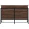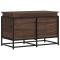 Boîte de rangement avec couvercle chêne marron bois ingénierieCette boîte de rangement est une solution de rangement idéale et un excellent supplément décoratif à votre espace de vie. Matériau stable et durable : le bois d'ingénierie est un matériau durable et stable dont la surface lisse résiste à l'humidité, à la déformation et au fendillement, ce qui en fait un choix fiable pour une grande variété de projets.Cadre stable et durable : le cadre en métal de la boîte à couvertures rehausse votre intérieur d'un style industriel et offre une durabilité, une stabilité et une résistance à la corrosion exceptionnelles.Grand espace de rangement : ce coffre de rangement offre suffisamment d'espace pour garder vos vêtements, couvertures, jouets, coussins et autres objets essentiels du quotidien bien organisés.Utilisation polyvalente : avec un dessus stable, le coffre à jouets offre une surface sécurisée pour placer des collations, des boissons, des vases, des bols de fruits ou d'autres objets décoratifs. Cette boîte de rangement peut également être utilisée comme table basse, bout de canapé, table d'appoint, etc. Attention :Pour éviter qu'il ne bascule, ce produit doit être utilisé avec le dispositif de fixation murale fourni.