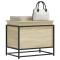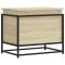 Boîte de rangement avec couvercle chêne sonoma bois ingénierieCette boîte de rangement est une solution de rangement idéale et un excellent supplément décoratif à votre espace de vie. Matériau stable et durable : le bois d'ingénierie est un matériau durable et stable dont la surface lisse résiste à l'humidité, à la déformation et au fendillement, ce qui en fait un choix fiable pour une grande variété de projets.Cadre stable et durable : le cadre en métal de la boîte à couvertures rehausse votre intérieur d'un style industriel et offre une durabilité, une stabilité et une résistance à la corrosion exceptionnelles.Grand espace de rangement : ce coffre de rangement offre suffisamment d'espace pour garder vos vêtements, couvertures, jouets, coussins et autres objets essentiels du quotidien bien organisés.Utilisation polyvalente : avec un dessus stable, le coffre à jouets offre une surface sécurisée pour placer des collations, des boissons, des vases, des bols de fruits ou d'autres objets décoratifs. Cette boîte de rangement peut également être utilisée comme table basse, bout de canapé, table d'appoint, etc. Attention :Pour éviter qu'il ne bascule, ce produit doit être utilisé avec le dispositif de fixation murale fourni.