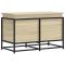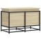 Boîte de rangement avec couvercle chêne sonoma bois ingénierieCette boîte de rangement est une solution de rangement idéale et un excellent supplément décoratif à votre espace de vie. Matériau stable et durable : le bois d'ingénierie est un matériau durable et stable dont la surface lisse résiste à l'humidité, à la déformation et au fendillement, ce qui en fait un choix fiable pour une grande variété de projets.Cadre stable et durable : le cadre en métal de la boîte à couvertures rehausse votre intérieur d'un style industriel et offre une durabilité, une stabilité et une résistance à la corrosion exceptionnelles.Grand espace de rangement : ce coffre de rangement offre suffisamment d'espace pour garder vos vêtements, couvertures, jouets, coussins et autres objets essentiels du quotidien bien organisés.Utilisation polyvalente : avec un dessus stable, le coffre à jouets offre une surface sécurisée pour placer des collations, des boissons, des vases, des bols de fruits ou d'autres objets décoratifs. Cette boîte de rangement peut également être utilisée comme table basse, bout de canapé, table d'appoint, etc. Attention :Pour éviter qu'il ne bascule, ce produit doit être utilisé avec le dispositif de fixation murale fourni.