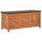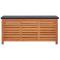 Boîte de rangement de jardin 117x50x55 cm Eucalyptus solideCette boîte de rangement, au design élégant, offre une excellente solution pour votre espace extérieur et est facile à intégrer dans n'importe quel environnement pour un stockage suffisant. Robuste et stable : le bois d'eucalyptus massif est un magnifique matériau naturel. Le bois d'eucalyptus est extrêmement dense et hydrofuge. Le matériau est bien connu pour sa riche couleur brun rougeâtre. Grand espace de rangement : ce coffre de rangement offre suffisamment d'espace pour les jouets, les coussins de chaise et l'équipement pour une piscine, des outils pour le barbecue ou le foyer, ou du linge de maison pour une table à manger. Utilisations multiples : le coffre de rangement de jardin sert à la fois de banc d'assise et de conteneur de rangement. Conception pratique : le dessus en métal avec revêtement en poudre noire et bois d'eucalyptus massif avec finition à l'huile naturelle aide à protéger vos articles contre les dommages causés par l'humidité. Facile à entretenir : cette boîte de rangement est facile à nettoyer et à entretenir, résistante et durable pour un usage quotidien. Bon à savoir : Pour que vos meubles d'extérieur restent beaux, nous vous recommandons de les protéger avec une housse imperméable.