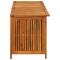 Boîte de rangement de jardin 150x50x58 cm Bois d'acacia solideÊtes-vous à la recherche d'un moyen de rangement extérieur attrayant et polyvalent ? Alors cette boîte de rangement de jardin en bois est un choix idéal et est destinée à être un excellent supplément à votre espace de vie extérieur ou intérieur. Matériau robuste et durable : la boîte à oreillers est faite de bois d'acacia massif avec une finition à l'huile et avec un sac résistant à l'eau à l'intérieur avec fermeture à glissière, ce qui la rend résistante à l'usure, très durable et adaptée à une utilisation en plein air. Grand espace de rangement : elle offre également une solution de rangement idéale pour les coussins, les oreillers, les couvertures supplémentaires ou autres articles de maison ou de jardin à portée de main et bien organisés. Bon à savoir : Afin de prolonger la durée de vie de votre mobilier d'extérieur, nous vous recommandons de le protéger avec une housse imperméable.