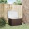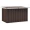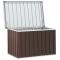 Boîte de rangement de jardin Marron 109x67x65 cmCe coffre de rangement élégant est idéal pour ranger vos coussins, oreillers, couvertures et autres articles dans le jardin ou sur la terrasse. Cadre stable et durable : Le cadre en acier galvanisé est solide, stable, durable et résistant à la corrosion et aux intempéries, garantissant des performances durables. Grand espace de rangement : Ce coffre de rangement offre suffisamment d'espace pour ranger coussins, oreillers, couvertures, jouets et autres articles. Utilisations multiples : Le coffre de rangement de jardin sert à la fois de conteneur de rangement et de boîte à outils grâce à sa construction solide. Design intemporel : Le coffre de rangement de jardin a un design sobre mais intemporel et s'intégrera dans n'importe quel décor. Bon à savoir : Pour que votre mobilier d'extérieur reste beau, nous vous recommandons de le protéger avec une housse imperméable. Pour éviter les dommages causés par une forte accumulation de neige, nous vous recommandons de dégager le le toit régulièrement pendant l'hiver.