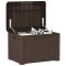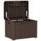 Boîte de rangement jardin coussin de siège marron 125 L PPCette boîte de rangement de jardin à l'aspect de rotin est idéale pour ranger vos coussins, oreillers, couvertures, jouets et autres objets dans le jardin ou sur la terrasse. Matériau durable : le polypropylène (PP) est un plastique populaire qui est également l'un des matériaux les plus utilisés dans le mobilier d'extérieur. Il est léger, robuste et résistant aux chocs. De plus, cette boîte de rangement est résistante aux intempéries, aux UV et facile à entretenir. Grand espace de rangement : cette boîte de rangement d'extérieur dispose de 125 L d'espace de rangement pour coussins, oreillers, couvertures, outils de jardin et bien plus encore pour garder votre espace de jardin bien rangé ! Utilisation polyvalente : ce coffre de rangement est utilisé non seulement comme conteneur de rangement pour le jardin, mais a également un coussin confortable d'une capacité de charge de 180 kg, qui peut être utilisée comme une chaise, idéale pour le jardin, l'arrière-cour, le porche d'entrée et plus encore ! Design par poussée de gaz : le système de levage à gaz permet d'ouvrir complètement le couvercle et de le refermer lentement, ce qui facilite l'utilisation sans écraser les doigts. Verrouillable : ce rangement pour coussins d'extérieur peut être verrouillé pour plus de sécurité (verrou non inclus). Bon à savoir :Pour que vos meubles d'extérieur restent beaux, nous vous recommandons de les protéger avec une housse imperméable.