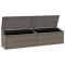 Boîte de rangement de jardin gris 220x50x58 cm résine tresséeCette boîte de rangement de jardin est parfaite pour garder vos coussins de meubles d'extérieur, fournitures de jardinage, serviettes de piscine et d'autres articles organisés et facilement accessibles. Matériau durable : la résine tressée, également connue sous le nom de poly rotin, est un matériau synthétique solide et nécessitant peu d'entretien qui ressemble au rotin naturel. Elle est légère, facile à nettoyer et couramment utilisée pour les meubles d'extérieur en raison de sa durabilité et de ses propriétés de résistance aux intempéries. Cadre robuste et stable : le cadre en acier enduit de poudre est solide, stable, durable et résistant à la corrosion et aux intempéries, ce qui garantit des performances durables. Sécurité et facilité d'ouverture et de fermeture : le ressort à gaz facilite l'ouverture du couvercle et l'empêche de claquer ou de coincer les doigts. Fonction de rangement : le meuble de jardin dispose d'un espace de rangement en dessous, équipé d'un sac résistant à l'eau pour ranger coussins, jouets et autres articles. Bon à savoir : Pour que vos meubles d'extérieur restent beaux, nous vous recommandons de les protéger avec une housse imperméable.