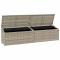 Boîte de rangement de jardin gris clair 220x50x58 cm rotinCette boîte de rangement de jardin est parfaite pour garder vos coussins de meubles d'extérieur, fournitures de jardinage, serviettes de piscine et d'autres articles organisés et facilement accessibles. Matériau durable : la résine tressée, également connue sous le nom de poly rotin, est un matériau synthétique solide et nécessitant peu d'entretien qui ressemble au rotin naturel. Elle est légère, facile à nettoyer et couramment utilisée pour les meubles d'extérieur en raison de sa durabilité et de ses propriétés de résistance aux intempéries. Cadre robuste et stable : le cadre en acier enduit de poudre est solide, stable, durable et résistant à la corrosion et aux intempéries, ce qui garantit des performances durables. Sécurité et facilité d'ouverture et de fermeture : le ressort à gaz facilite l'ouverture du couvercle et l'empêche de claquer ou de coincer les doigts. Fonction de rangement : le meuble de jardin dispose d'un espace de rangement en dessous, équipé d'un sac résistant à l'eau pour ranger coussins, jouets et autres articles. Bon à savoir : Pour que vos meubles d'extérieur restent beaux, nous vous recommandons de les protéger avec une housse imperméable.