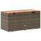 Boîte de rangement de jardin gris résine tressée bois d'acaciaCette boîte de rangement de jardin est idéale pour ranger vos coussins, oreillers, couvertures, jouets et autres objets dans le jardin ou sur la terrasse. Matériau durable : la résine tressée, également connue sous le nom de poly rotin, est un matériau synthétique solide et nécessitant peu d'entretien qui ressemble au rotin naturel. Il est léger, facile à nettoyer et couramment utilisé pour les meubles d'extérieur en raison de sa durabilité et de ses propriétés de résistance aux intempéries.Fonction de rangement avec sac résistant à l'eau : le mobilier de jardin dispose d'un espace de rangement sous l'assise, complété par un sac résistant à l'eau pour ranger coussins, jouets et autres objets. Le sac intérieur peut être solidement fixé au mobilier d'extérieur grâce à des attaches auto-agrippantes pour plus de stabilité.Fonctionnalité polyvalente : ce meuble d'extérieur sert à la fois de boîte de rangement de jardin et de banc.Sécurité et facilité d'ouverture et de fermeture : le ressort à gaz facilite l'ouverture du couvercle et l'empêche de claquer ou de coincer les doigts.Dessus stable et facile à nettoyer : ce meuble de patio a un dessus en bois d'acacia robuste, durable et facile à nettoyer avec un chiffon humide. Bon à savoir :Pour que vos meubles d'extérieur restent beaux, nous vous recommandons de les protéger avec une housse imperméable.