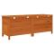 Boîte de rangement de jardin marron bois massif de sapinCette boîte de rangement de jardin en bois offre suffisamment d'espace de rangement pour les coussins de meubles de jardin et tout ce que vous aimez garder à portée de main dans l'espace de vie extérieur. Bois de sapin massif : le bois de sapin massif est un beau matériau naturel. Le bois de sapin ne sèche pas et ne se déforme pas lorsqu'il est exposé à l'humidité. Fabriquée en bois de sapin massif, la boîte de rangement d'extérieur est durable et robuste.Grand espace de rangement : l'espace de rangement permet de ranger facilement les coussins d'extérieur pour garder les choses organisées. Vous pouvez ranger coussins, tapis et autres objets à portée de main et bien organisés.Fond à lattes : ce rangement pour coussins de jardin est doté d'une base à lattes qui garantit une aération optimale. Bon à savoir :Pour que vos meubles d'extérieur restent beaux, nous vous recommandons de les protéger avec une housse imperméable.