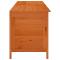 Boîte de rangement de jardin marron bois massif de sapinCette boîte de rangement de jardin en bois offre suffisamment d'espace de rangement pour les coussins de meubles de jardin et tout ce que vous aimez garder à portée de main dans l'espace de vie extérieur. Bois de sapin massif : le bois de sapin massif est un beau matériau naturel. Le bois de sapin ne sèche pas et ne se déforme pas lorsqu'il est exposé à l'humidité. Fabriquée en bois de sapin massif, la boîte de rangement d'extérieur est durable et robuste.Grand espace de rangement : l'espace de rangement permet de ranger facilement les coussins d'extérieur pour garder les choses organisées. Vous pouvez ranger coussins, tapis et autres objets à portée de main et bien organisés.Fond à lattes : ce rangement pour coussins de jardin est doté d'une base à lattes qui garantit une aération optimale. Bon à savoir :Pour que vos meubles d'extérieur restent beaux, nous vous recommandons de les protéger avec une housse imperméable.