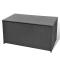 Boîte de rangement de jardin noir 120x50x60 cm résine tresséeCette caisse de stockage de jardin en résine tressée sera idéale pour ranger et stocker les couvertures, les oreillers, les coussins, les livres et autres objets qui traînent dans le jardin ou sur le patio. Ce coffre de stockage dispose d'une doublure, ce qui la rend une solution idéale de rangement pour les coussins de votre mobilier de jardin et toutes sortes d'autres objets. Grâce à la résine tressée résistante aux intempéries, le coffre de rangement est facile à nettoyer, résistant à l'usure et adapté à une utilisation quotidienne à l'extérieur. La caisse dispose d'un cadre en acier laqué robuste, qui est extrêmement durable. La doublure en polyester protégera les contenus contre l'humidité. Remarque : veuillez couvrir la boîte à coussins par un tissu / un matériau imperméable pour empêcher la pluie d'entrer dans la boîte s'il pleut.