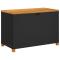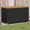 Boîte de rangement de jardin noir résine tressée bois d'acaciaCette boîte de rangement de jardin est idéale pour ranger vos coussins, oreillers, couvertures et autres objets dans le jardin ou sur la terrasse. Matériau durable : la résine tressée, également connue sous le nom de poly rotin, est un matériau synthétique solide et nécessitant peu d'entretien qui ressemble au rotin naturel. Il est léger, facile à nettoyer et couramment utilisé pour les meubles d'extérieur en raison de sa durabilité et de ses propriétés de résistance aux intempéries.Fonction de rangement avec sac résistant à l'eau : le mobilier de jardin dispose d'un espace de rangement sous l'assise, complété par un sac résistant à l'eau pour ranger coussins, et autres objets. Le sac intérieur peut être solidement fixé au mobilier d'extérieur grâce à des attaches auto-agrippantes pour plus de stabilité.Fonctionnalité polyvalente : ce meuble d'extérieur sert à la fois de boîte de rangement de jardin et de banc.Sécurité et facilité d'ouverture et de fermeture : le ressort à gaz facilite l'ouverture du couvercle et l'empêche de claquer ou de coincer les doigts.Dessus stable et facile à nettoyer : ce meuble de patio a un dessus en bois d'acacia robuste, durable et facile à nettoyer avec un chiffon humide. Bon à savoir :Pour que vos meubles d'extérieur restent beaux, nous vous recommandons de les protéger avec une housse imperméable.