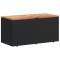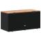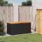 Boîte de rangement de jardin noir résine tressée bois d'acaciaCette boîte de rangement de jardin est idéale pour ranger vos coussins, oreillers, couvertures et autres objets dans le jardin ou sur la terrasse. Matériau durable : la résine tressée, également connue sous le nom de poly rotin, est un matériau synthétique solide et nécessitant peu d'entretien qui ressemble au rotin naturel. Il est léger, facile à nettoyer et couramment utilisé pour les meubles d'extérieur en raison de sa durabilité et de ses propriétés de résistance aux intempéries.Fonction de rangement avec sac résistant à l'eau : le mobilier de jardin dispose d'un espace de rangement sous l'assise, complété par un sac résistant à l'eau pour ranger coussins, et autres objets. Le sac intérieur peut être solidement fixé au mobilier d'extérieur grâce à des attaches auto-agrippantes pour plus de stabilité.Fonctionnalité polyvalente : ce meuble d'extérieur sert à la fois de boîte de rangement de jardin et de banc.Sécurité et facilité d'ouverture et de fermeture : le ressort à gaz facilite l'ouverture du couvercle et l'empêche de claquer ou de coincer les doigts.Dessus stable et facile à nettoyer : ce meuble de patio a un dessus en bois d'acacia robuste, durable et facile à nettoyer avec un chiffon humide. Bon à savoir :Pour que vos meubles d'extérieur restent beaux, nous vous recommandons de les protéger avec une housse imperméable.