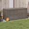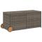 Boîte de rangement de jardin et roues gris 283L résine tresséeCette boîte de rangement de jardin est idéale pour ranger vos coussins, oreillers, couvertures et autres objets dans le jardin ou sur la terrasse. Matériau durable : la résine tressée, également connue sous le nom de poly rotin, est un matériau synthétique solide et nécessitant peu d'entretien qui ressemble au rotin naturel. Il est léger, facile à nettoyer et couramment utilisé pour les meubles d'extérieur en raison de sa durabilité et de ses propriétés de résistance aux intempéries.Fonction de rangement avec sac résistant à l'eau : le meuble de jardin dispose d'un sac résistant à l'eau pour ranger coussins et autres objets. Le sac intérieur peut être solidement fixé au mobilier d'extérieur grâce à des attaches auto-agrippantes pour plus de stabilité.Sécurité et facilité d'ouverture et de fermeture : le ressort à gaz facilite l'ouverture du couvercle et l'empêche de claquer ou de coincer les doigts.Facile à déplacer : la boîte de rangement extérieure est dotée de 2 roues et d'une poignée sur le côté pour un transport facile.Cadre robuste et stable : le cadre en acier enduit de poudre assure la solidité et la stabilité du meuble de jardin pour une utilisation quotidienne à l'extérieur. Bon à savoir :Pour que vos meubles d'extérieur restent beaux, nous vous recommandons de les protéger avec une housse imperméable.