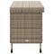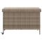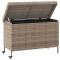 Boîte de rangement de jardin et roues gris résine tresséeCette boîte de rangement de jardin est idéale pour ranger vos coussins, oreillers, couvertures et autres objets dans le jardin ou sur la terrasse. Matériau durable : la résine tressée, également connue sous le nom de poly rotin, est un matériau synthétique solide et nécessitant peu d'entretien qui ressemble au rotin naturel. Elle est légère, facile à nettoyer et couramment utilisée pour les meubles d'extérieur en raison de sa durabilité et de ses propriétés de résistance aux intempéries.Fonction de rangement : le meuble de jardin dispose d'un espace de rangement en dessous, équipé d'un sac résistant à l'eau pour ranger les coussins, les jouets et d'autres objets. Le sac intérieur peut être solidement fixé au siège à l'aide de bandes auto-agrippantes, ce qui garantit la stabilité et empêche tout mouvement.Sécurité et facilité d'ouverture et de fermeture : le ressort à gaz facilite l'ouverture du couvercle et l'empêche de claquer ou de coincer les doigts.Facile à déplacer : ce coffre de rangement extérieur est équipé de deux roues avec freins, ce qui permet de le déplacer sans effort à l'endroit souhaité, tout en le bloquant en toute sécurité pour un meilleur contrôle et une plus grande sécurité. De plus, la poignée facilite le transport.Cadre robuste et stable : le cadre en acier enduit de poudre assure la solidité et la stabilité du meuble de jardin pour une utilisation quotidienne à l'extérieur. Bon à savoir :Pour que vos meubles d'extérieur restent beaux, nous vous recommandons de les protéger avec une housse imperméable.