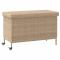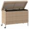 Boîte de rangement de jardin et roues résine tresséeCette boîte de rangement de jardin est idéale pour ranger vos coussins, oreillers, couvertures et autres objets dans le jardin ou sur la terrasse. Matériau durable : la résine tressée, également connue sous le nom de poly rotin, est un matériau synthétique solide et nécessitant peu d'entretien qui ressemble au rotin naturel. Elle est légère, facile à nettoyer et couramment utilisée pour les meubles d'extérieur en raison de sa durabilité et de ses propriétés de résistance aux intempéries.Fonction de rangement : le meuble de jardin dispose d'un espace de rangement en dessous, équipé d'un sac résistant à l'eau pour ranger les coussins, les jouets et d'autres objets. Le sac intérieur peut être solidement fixé au siège à l'aide de bandes auto-agrippantes, ce qui garantit la stabilité et empêche tout mouvement.Sécurité et facilité d'ouverture et de fermeture : le ressort à gaz facilite l'ouverture du couvercle et l'empêche de claquer ou de coincer les doigts.Facile à déplacer : ce coffre de rangement extérieur est équipé de deux roues avec freins, ce qui permet de le déplacer sans effort à l'endroit souhaité, tout en le bloquant en toute sécurité pour un meilleur contrôle et une plus grande sécurité. De plus, la poignée facilite le transport.Cadre robuste et stable : le cadre en acier enduit de poudre assure la solidité et la stabilité du meuble de jardin pour une utilisation quotidienne à l'extérieur. Bon à savoir :Pour que vos meubles d'extérieur restent beaux, nous vous recommandons de les protéger avec une housse imperméable.