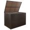 Boîte de stockage de jardin marron 150x100x100cm Résine tresséeCette boîte de rangement d'extérieur en résine tressée est idéale pour ranger les coussins de meubles de jardin, les oreillers, les couvertures supplémentaires, les serviettes ainsi que les bibelots ménagers et bien plus encore. Grâce à la résine tressée résistante aux intempéries, le coffre de rangement est facile à nettoyer, résistant à l'usure et convient aussi bien à un usage extérieur qu'intérieur. La boîte de rangement de jardin est dotée d'un cadre en acier robuste, enduit de poudre, qui est très durable. La doublure avec fermeture éclair protège le contenu de l'humidité. Le coffre de rangement a un design moderne qui s'adapte à tout espace de vie extérieur ou intérieur. La boîte de rangement est facile à assembler. Remarque : veuillez couvrir la boîte à coussins par un tissu / un matériau imperméable pour empêcher la pluie d'entrer dans la boîte s'il pleut.