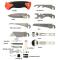La boite de survie Fosco Outdoor Toolbox comprend un kit de survie, des couverts de bivouac et un couteau multifonction avec différents outils et lames interchangeables : lame de couteau, lame de scie, lame de cutter et ouvre-boite notamment. Également inclus : fourchette, cuillère, allumettes, crayon, pincettes, kit de pêche, kit de couture, tournevis cruciforme et plat. Set compact : 13 x 6,5 x 5 cm.
