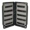 Boîte légère et flottante (insubmersible) en mousse haute densité avec système de fermeture magnétique. - Dimensions : 19 × 9 × 2,5 cm - Intérieur : 2 × 5 bandes rainurées - Nombre de mouches : 200