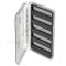 Boîtes très pratiques et légères pour mettre les mouches sèches, émergentes et les nymphes dans un minimum d'encombrement. - Dimensions : 12.8 X 8.8 X 1.5 cm - Intérieur : Face 5 bandes rainurées - Nombre de mouches : 100