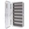Boîtes très pratiques et légères pour mettre les mouches sèches, émergentes et les nymphes dans un minimum d'encombrement. - Dimensions : 15.5 X 10 X 2.5 cm - Intérieur : Face 7 bandes rainurées - Nombre de mouches : 180