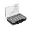 Boîtes très résistantes avec couvercle en plastique transparent. Elles possèdent 2 faces avec un système de fermeture à pression et un joint d'étanchéité. - Dimensions : 10,7 × 7,5 × 3 cm - Intérieur : 2 × 5 bandes en mousse rainurée - Nombre de mouches : 150