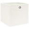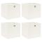 Boîtes de rangement 4 pcs Blanc 32x32x32 cm TissuCes boîtes de rangement pliables s'adaptent parfaitement à votre maison pour offrir suffisamment d'espace pour ranger foulards, chaussettes, sous-vêtements, etc. Les boîtes de rangement pratiques sont en tissu non tissé, ce qui les rend assez durables. Chaque boîte de rangement comporte également un oeillet métallique pratique qui peut être utilisé pour les sortir de votre armoire, étagère, garde-robe, etc. Bien qu'elles ne soient pas utilisées, les boîtes de rangement peuvent être pliées pour gagner de la place.