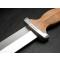C'est un couteau très bien conçu et réellement efficace : il est léger et cela coupe très fort. La géométrie de la lame est très efficace et la rétention à la coupe est très correcte. Toutefois, un problème de taille : l'assemblage est pourri et la qualité des matériaux du manche catastrophique : plaquettes en plastique creux , mal assemblées, qui ont pris du jeux au bout de 5' de travail. Bref, c'est très décevant .