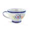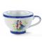 Le motif dessine un couple de Bretons face à face dans un décor stylisé d'herbes vertes piquetées de coquelicots rouges. Les silhouettes, le rouge et le bleu en alternance sur leurs costumes à la mode de jadis s'inspirent des illustrations typiques des anciennes faïences fabriquées dans les ateliers de Quimper. Même son origine reste inconnue, la peinture de personnages mis en scène sur les faïences devient fréquente dès la fin du XVIIème siècle ! Ainsi, les représentations typisées et les ornements bleus de la bolée personnages l'apparentent à un traduction picturale bretonne. Voilà une belle bolée contemporaine qui vous plonge dans le passé !