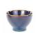 Là, le regard suit un fin liséré brun qui court sur le bord avant de plonger vers l'intérieur vernissé de reflets de lumière. A coup sûr, la bolée bleu moucheté sans anse sera sur votre table du plus bel effet et plaira à vos convives !