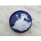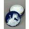 VINTAGE - Ancienne bonbonnière circulaire en porcelaine Bleu et Blanche a décor d'une scène romantique a l'antique - Signée GOT (XXé)