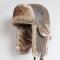 Bonnet Chapka en Cuir Marron avec fausse Fourrure Protection Froid Hiver Chapeau avec Rabat