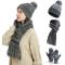 Bonnet Tricoté Écharpe et Gants Tactiles Chaleur Confort et Élégance 3 en 1 pour Femme Gris