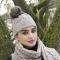Bonnet chaud laine mérinos côtes avec pompon beige moyen