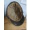 Bonnet garde rouge de la révolution d'octobre époque 1917/1919,constitué de morceaux de toile de jute assemblées,insigne frontal étoile rouge avec le marteau et la charrue,extrémité typique constituée par une pièce de bois,intérieur en toile en bel état
