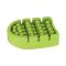 Elle est équipée de crampons biseautés pour accrocher sur terrains meubles comme la terre ou la boue et des stries anti-glisse pour adhérer aux surfaces lisses ou mouillées comme le béton et le carrelage.