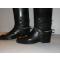 vends 1 paire bottes d’équitation homme en cuir réalisées par ancien cordonnier militaire dimensions longueur arrière talon à haut de la botte 47,5 cm semelle longueur 28,5 cm largeur 10,5 cm tour de mollet 42 cm pour chaque botte bon état général utilisation normale embauchoir en bois très bon état paire d’éperons avec leur attache d’origine poids de l’ensemble 9 kgs prix 300 euros