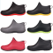 Bottes pluie basses, avec chaussons, du 35 au 44, noir et rouge.
