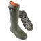 Caoutchouc naturel imperméable, doublure Néoprène de 4 mm, première de propreté amovible, soufflet d'extension pour chaussage rapide avec sangle d'ajustage, semelle antidérapante en caoutchouc avec crampons profonds et larges, renfort acier anti-torsion, amorti grand confort, forme ergonomique.
