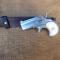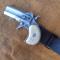 Derringer grandeur réel et très fidèle à l'original, en laiton massif finition vieil argent, et crosse façon nacre.