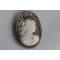 Boucle de ceinture en camée coquillage très fin entourage orné de fines perles et monture en vermeil (argent doré, pas de poinçon, testé à l'acide) dimensions camée : 5,7 x 4,2 d'époque XIXe siècle bon état