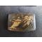 Boucle de ceinture ciselée par artisan japonais, paysage, shibuishi patiné, dorure