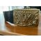 Boucle de ceinture en laiton massif avec le ceinturon en cuir d'époque, la boucle et le ceinturon sont marqué avec le fabriquant PETTIBONE BRO du XIX siècle début XXe. État correct du cuir à l'extérieur mais pas mal abimé coté intérieur. Quelques traces de moisissures du à une mauvaise conservation ( lieu humide à mon avis) mais qui peuvent se nettoyer facilement. Bon état général pour son époque. longueur du cuir 90 cm. Une belle pièce de collection pour collectionneur de la guerre de de secéssion.