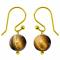Boucles d'oreilles pendantes dorées perle oeil de tigre