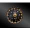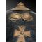 Il est richement décoré de pièces de laiton découpé ; le pourtour est orné de seize triangles, un médaillon en partie centrale et des pièces rondes et en forme croix. Le bord est également pincé de pièces de laiton.