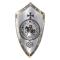 Bouclier en Acier peint en gris avec sceau templier un cheval monté par deux cavaliers.