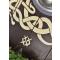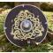 -Bien que les runes soient d'origine anglo-saxonne, le motif du serpent peut être interprété comme une représentation du serpent nordique Midgard (également appelé Jörmungandr ou Ceinture du monde ), un personnage clé de la mythologie germanique - ce qui fait de ce bouclier un bouclier viking approprié. Avec Hel et le loup Fenris, le serpent fait partie des trois ennemis du monde. Tous trois sont les enfants du dieu malveillant Loki et de la géante Angrboda. Jormungand repose dans les profondeurs de la mer qui entoure Midgard. Son corps est si imposant qu'elle s'enroule une fois autour de toute la terre ferme et retient le bout de sa propre queue dans sa gorge. Lorsqu'elle se réveille et que la mer se déchaîne, de grandes inondations s'abattent sur le monde des mortels. En même temps, le serpent qui se mord la queue est un symbole significatif de l'unité et de l'éternel retour de toutes choses. Lors de la troisième rencontre entre Thor et Jörmungand au moment du Ragnarök, Thor réussit à tuer le serpent de Midgard avec son marteau Mjölnir.
